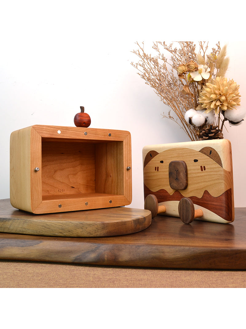 Wooden Animal Tissue Box with Phone Stand,Home Decor