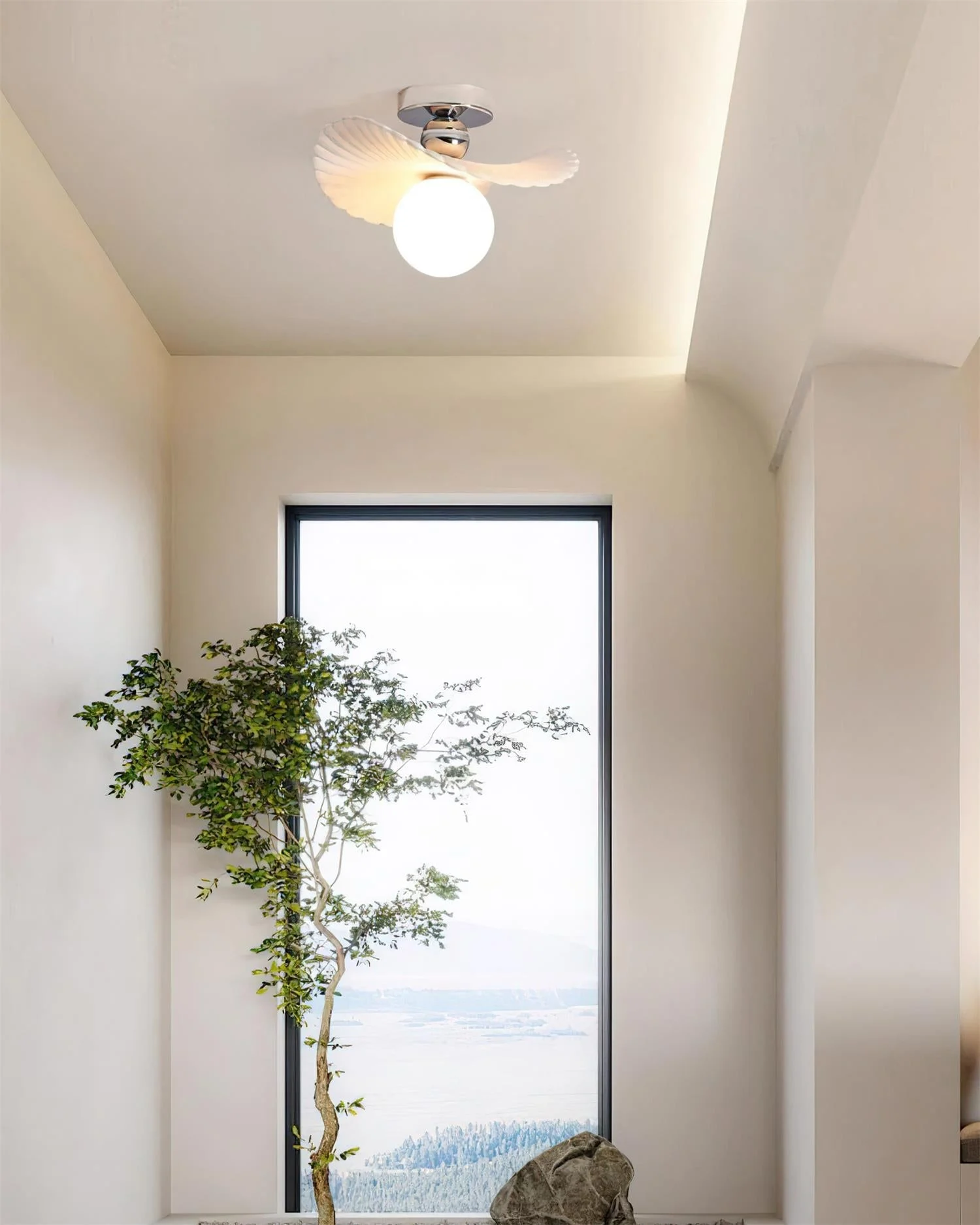 The Zinola Ceiling Lamp by Docos is a captivating fusion of artistry and functionality. Featuring an intricately designed shell-like shade, this lamp adds a touch of elegance and fluidity to your ceiling. Its frosted glass globe emits a soft, diffused glow, creating a warm and serene ambiance in any space. The polished chrome accents provide a modern contrast, enhancing its sophisticated appeal.