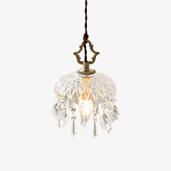 This elegant pendant light will make a glamorous addition to transitional and contemporary interiors. The beautiful glass shade features intricate designs that will reflect and refract the light housed within. Placed on its own or in multiples this lamp is sure to catch everyone’s eye.