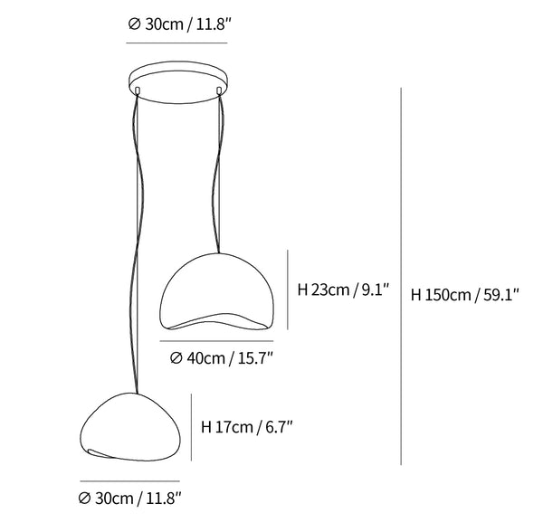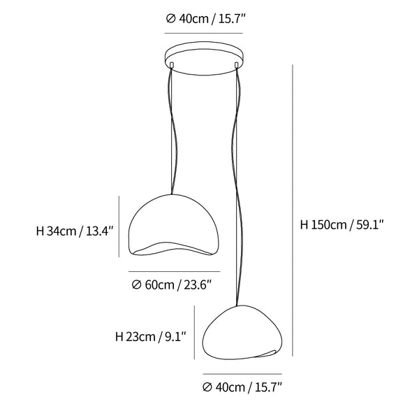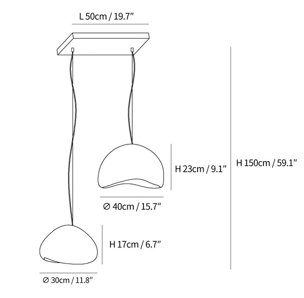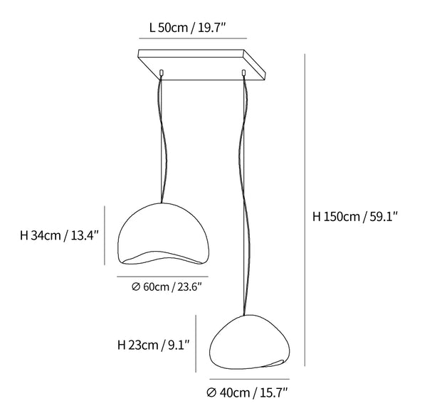 59″ Adjustable hanging height cable. Can be extended upon request.
