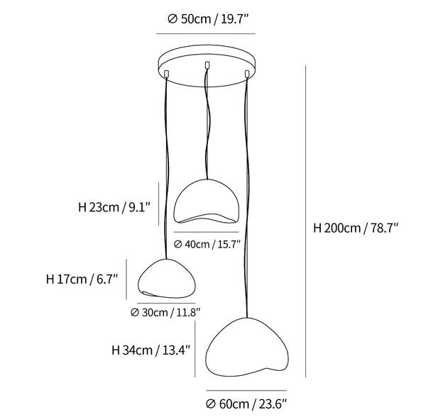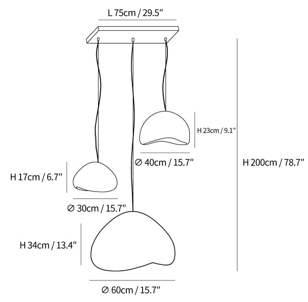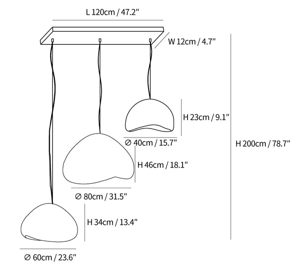 Please note: This lamp set, which includes sizes of 40cm, 60cm, and 80cm in diameter, is better suited for larger spaces due to its scale. It may overwhelm smaller areas.